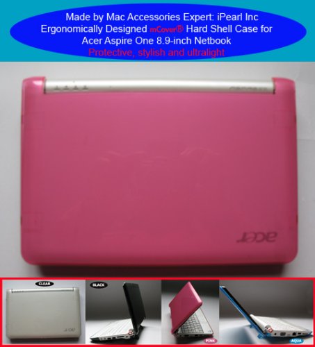 You Save : 65% mCover® PINK Hard Shell Case for Acer Aspire One 8.9" Netbook - Compatible with 3/6/9-cell battery # Made of USA-made high-quality translucent DOW polycarbonate material, which is shatter-proof and will protect your Aspire One all around.# Completely redesigned to fit the new Aspire One perfectly# Improved design to protect ALL corners for Aspire One# The ONLY Aspire One case with Retractable feet at the rear bottom to let you type more comfortably. It also helps to prolong your aluminum MacBook's life with BETTER heat ventilation from features like retractable feet and more wider ventilation slots.# 2-piece light-weight(5.2 oz or 148 g) shell easily snaps on and off.# All ports, battery test button and charging port are accessible.# 9 colors(Aqua/Clear/Black/Pink/Blue/Green/Purple/Orange/Red) in stock at the SAME price!